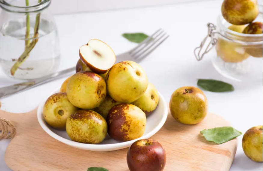 俗话说“七月十五红枣圈,八月十五打枣杆”,这个时候的鲜枣脆嫩甜美,口感佳。民间还有“中秋吃枣,长寿不老”的说法,虽然知道不能真的长寿不老,但中秋节食用鲜枣甘脆爽口,风味独特,营养特别丰富。枣因为其火红色的颜色,特别的显得喜庆和具有向上的正能量,包含有鼓励的意义,象征着爱情红红火火,祝福新的生活红似火。